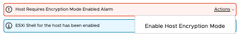 If we now reboot the ESXi-host, we notice the VM’s goes into ‘invalid state’ and Encrypted. At the same time we now receive a VM-locked Alarm. VCDB entry is still there, but now with state “0” and a host-alarm “Host Requires Encryption Mode Enabled”