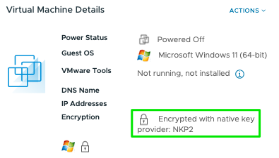 Creating a new WIn11-VM demonstrates this second default NKP2 is now in the lead for Encrypting new VM’s (the existing VM stays as is).